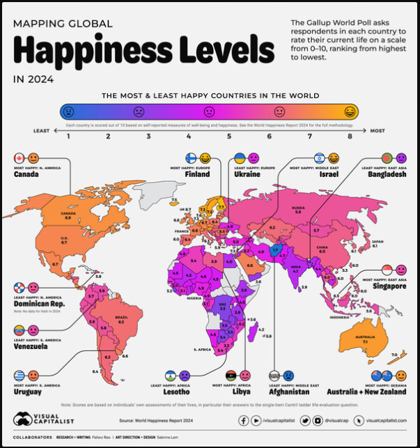 📌 2024년 기준 세계 행복지수 TOP 5 국가들